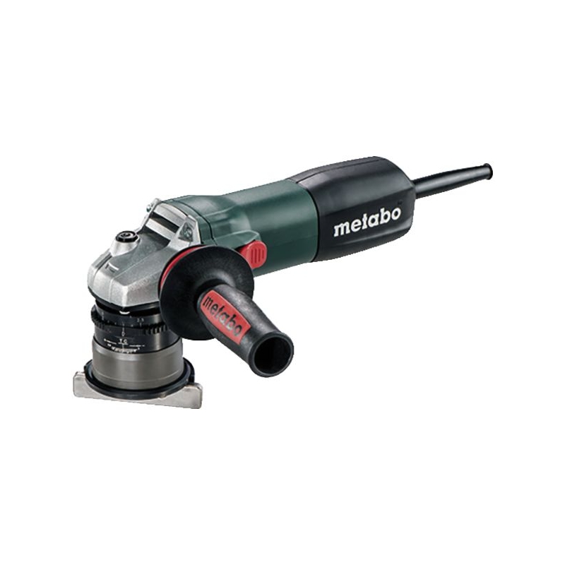 Compacte pour chanfreins de 45° et rayons de 2 à 3 mm. Tête de fraisage avec plaquettes amovibles et anneau d'usure sur roulement à billes. Vitesse variable, constante en charge. Arrêt de sécurité électronique du moteur en cas de blocage de l'outil. Protection électronique contre la surcharge, démarrage progressif et protection anti-redémarrage. Vitesse : 4500-11500 tr/mn Puissance : 900 W Largeur de chanfrein max. 45° : 6 mm Hauteur de chanfrein max. 45° : 4 mm Poids : 2,500 kg Livrée en coffret Metaloc.
