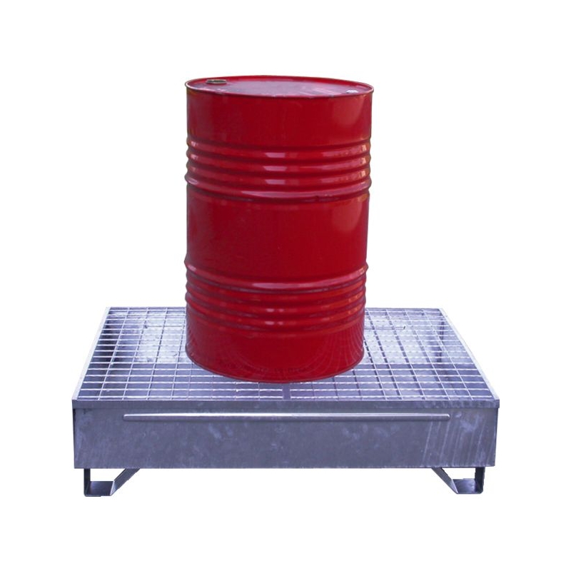 Adapté au stockage en rétention des hydrocarbures et des solvants. Protection de surface par galvanisation à chaud après soudures (suivant la norme EN ISO 1461). Caillebotis pressés amovibles. Pieds permettant la manutention par transpalette.