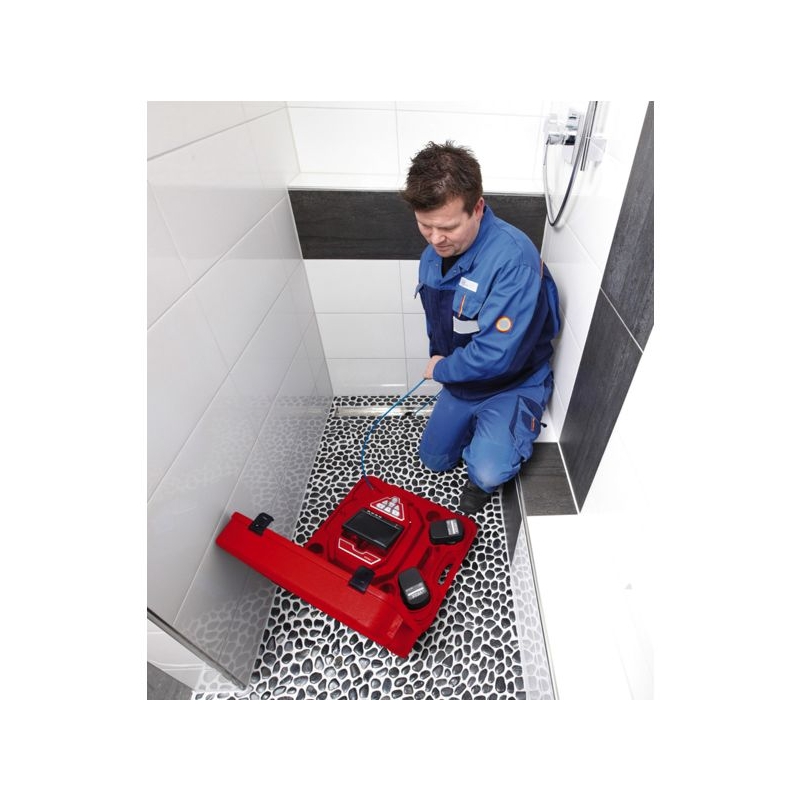 Caméra numérique couleur pour inspection des canalisations. Tête Ø 26 mm étanche. Pour tubes Ø intérieur 40 à 125 mm. Passage des coudes à 90° en Ø intérieur 50 mm. Flexible 30 m avec compteur métrique à l'écran. Écran couleur TFT 18 cm. Fonctionne sur alimentation secteur ou sur batterie. Enregistrement de photos et vidéos. Poids : 8,450 kg Livré avec 2 batteries 12 V 2.6 Ah + bloc d'alimentation secteur + tapis antidérapant + carte SD 2 GB + câble USB.