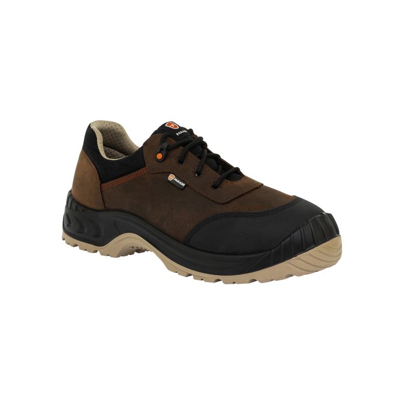 Tige en cuir Buffalo, hydrofuge. Renfort avant en croute de cuir enduite PU. Doublure mesh 3D. Première de propreté amovible en maille sur mousse PU. Semelle d'usure en PU double densité. Semelle antiperforation textile. Embout de sécurité en composite avec sur-embout. Poids : 660 g Coloris : cognac Pointure : 38 à 48 Norme : CE Cat II - EN ISO 20345 - S3 CI HI SRC