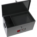 Tôle 1 et 1,2 mm. Plateau amovible. Fermoir porte-cadenas renforcé. Poignées indessoudables. Charnières 5 nœuds renforcées avec butée d'ouverture à 95°.