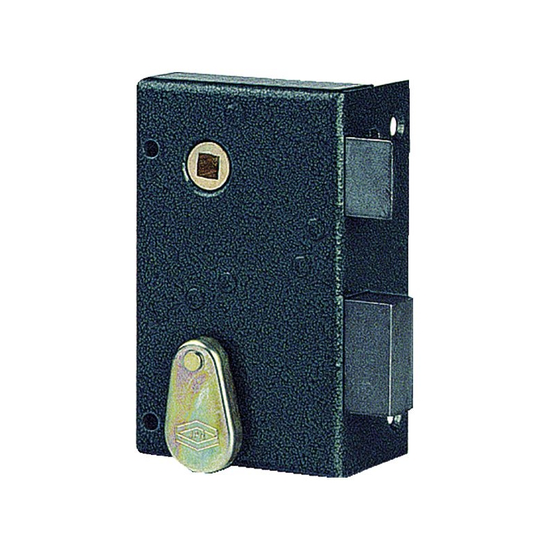 À fouillot. Pêne dormant ½ tour. Pêne ½ tour en acier. Fouillot en bronze d'alu. Livré avec gâche et 2 clés. Course du pêne dormant : 16 mm Axe : 58 mm Entraxe : 57 mm Modèle horizontal : 140 x 79 x 24 mm Fouillot carré : 6 mm Modèle vertical : 70 x 112 x 24 mm Fouillot carré : 7 mm Conditionnement : boite