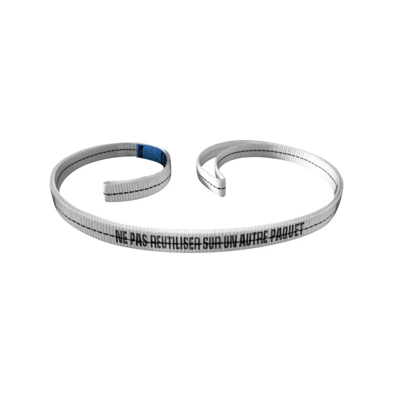 100% polyester multifilament haute ténacité. Boucle cousue pour un levage en étranglement. Coloris : blanc + 1 trait noir + inscription NE PAS RÉUTILISER Largeur : 30 mm Longueur : 1,5 m CMU : 900 kg Coefficient de sécurité : 7 Norme : 98/37/CE, décret n° 2001-1016 Vendue par lot de 10.