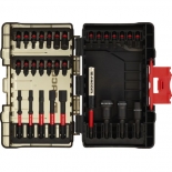 En coffret modulaire, connectable, compatible Tstak. Durée de vie X10 des embouts impact en 25 mm grâce à la deuxième zone de torsion. Porte douille magnétique et nettoyable. Composé de : - 21 embouts 25 mm : Hex 3, Hex 4, Hex 5, Hex 6, Hex 8, Hex 10, PH1, PH2, PZ1, PZ2 x3, PZ3, T10, T15, T20 x2, T25, T30, T40, SL5.5, - 5 embouts Flextorq 63 mm : Hex 4, Hex 5, Hex 6, Hex 8, Hex 10, - 1 porte-embouts magnétique avec zone de torsion de 92 mm, - 3 porte-douilles nettoyables : 8, 10, 13 mm.