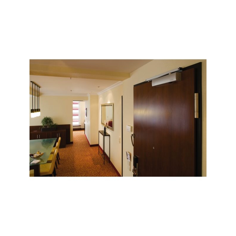 Corps seul, technologie crémaillère elliptique. Force de fermeture réglable 2 - 3 - 4 - 5 ou 6. Réversible DIN gauche, DIN droite. Vitesse de fermeture et à-coup final hydraulique réglables. Freinage à l‘ouverture intégré et réglage hydraulique possible. Lecteur optique de la force de fermeture. Soupape de sécurité contre les manœuvres forcées. Conforme aux normes NF EN 1154 et NF EN 1634. Homologué CE, CF/PF et PMR. Largeur du vantail : jusqu'à 1400 mm Poids du vantail : jusqu'à 250 kg Conditionnement : boite