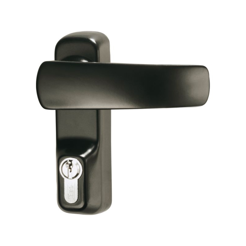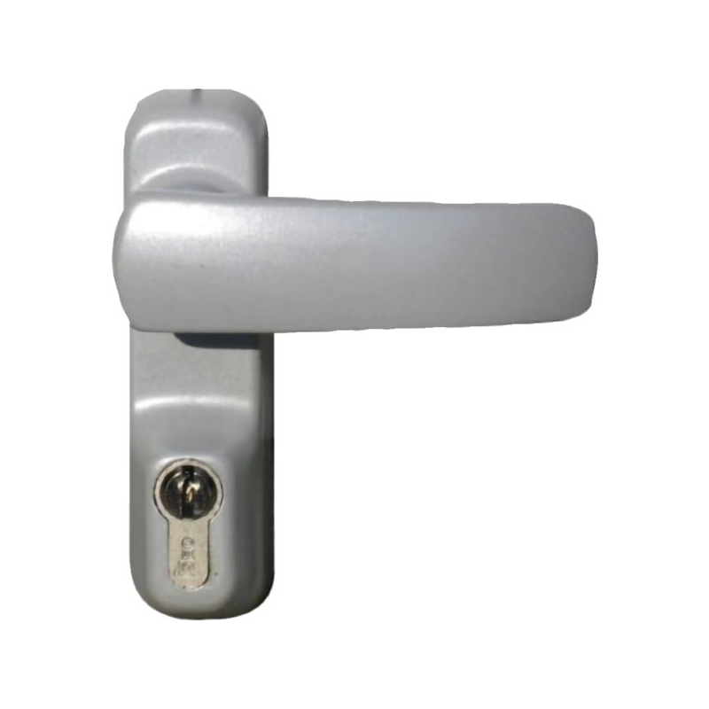 Module extérieur pouvant être associée à tous les dispositifs antipanique et de secours en applique Iseo, dans toutes les configurations et sur tous les points de fermeture. Équipé d'un système anti-vandalisme. Ensemble à cylindre et béquille débrayable. Le traitement spécial antibactérien AntiGerm relâche des ions d'argent pendant toute la durée de vie du produit, n'exige aucun entretien et permet d'employer ce dispositif dans tous les bâtiments où l'hygiène et la protection de la santé s'avèrent fondamentales. Livré sans cylindre. Conditionnement : boite
