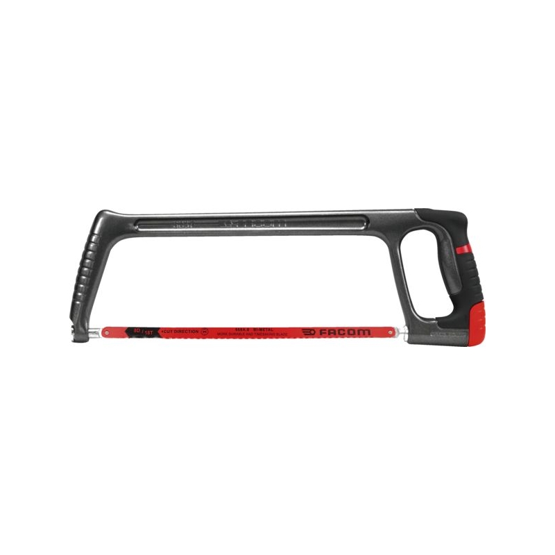 Contrôle automatique de la tension de la lame à 110 kg. Montage rapide de la lame par molette avec 8 positions de réglage. Poignée bi-matière soft grip. Longueur de lame : 300 mm Capacité de coupe : 145 mm Longueur totale : 440 mm