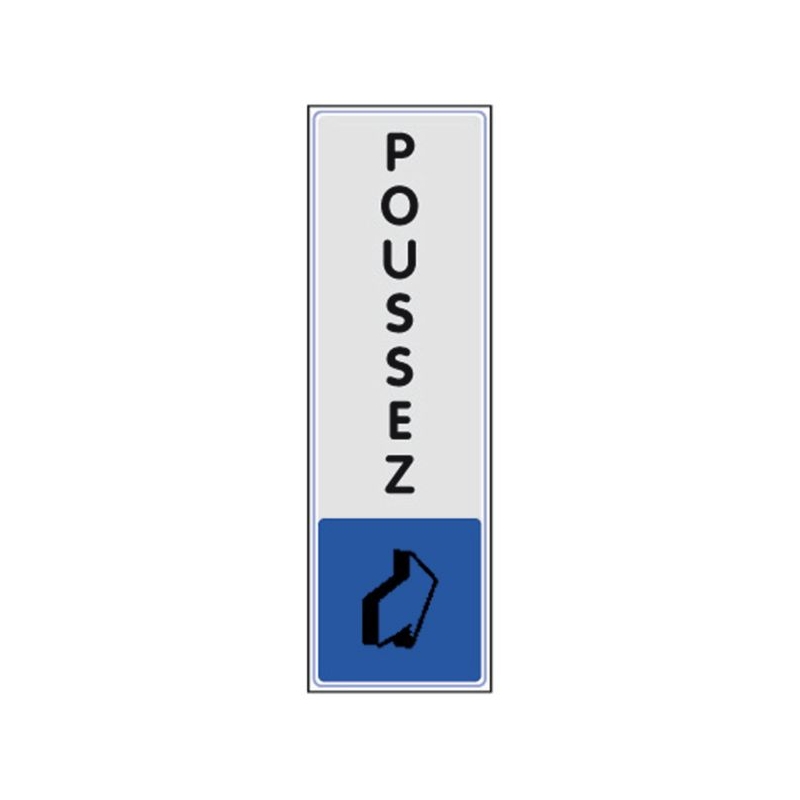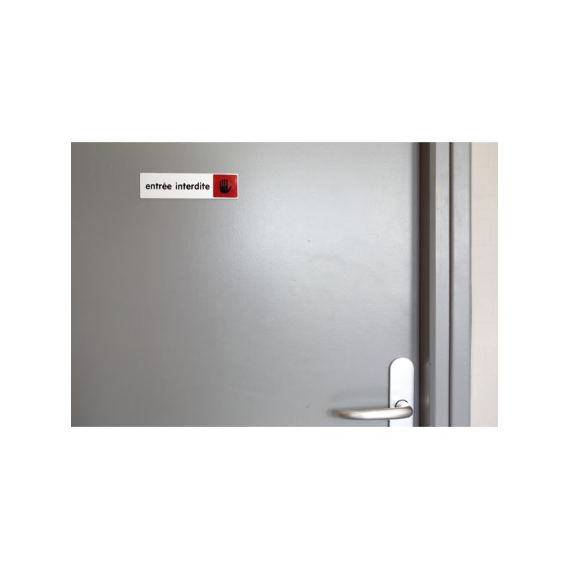En plexiglas, textes et logos imprimés au verso, aspect brillant durable et nettoyage facile. Fixation par adhésifs puissants pré-positionnés. Conforme aux normes AFNOR. Dimensions : 170 x 45 mm Coloris : fond argent, textes et logos noirs, logo sur fond couleur