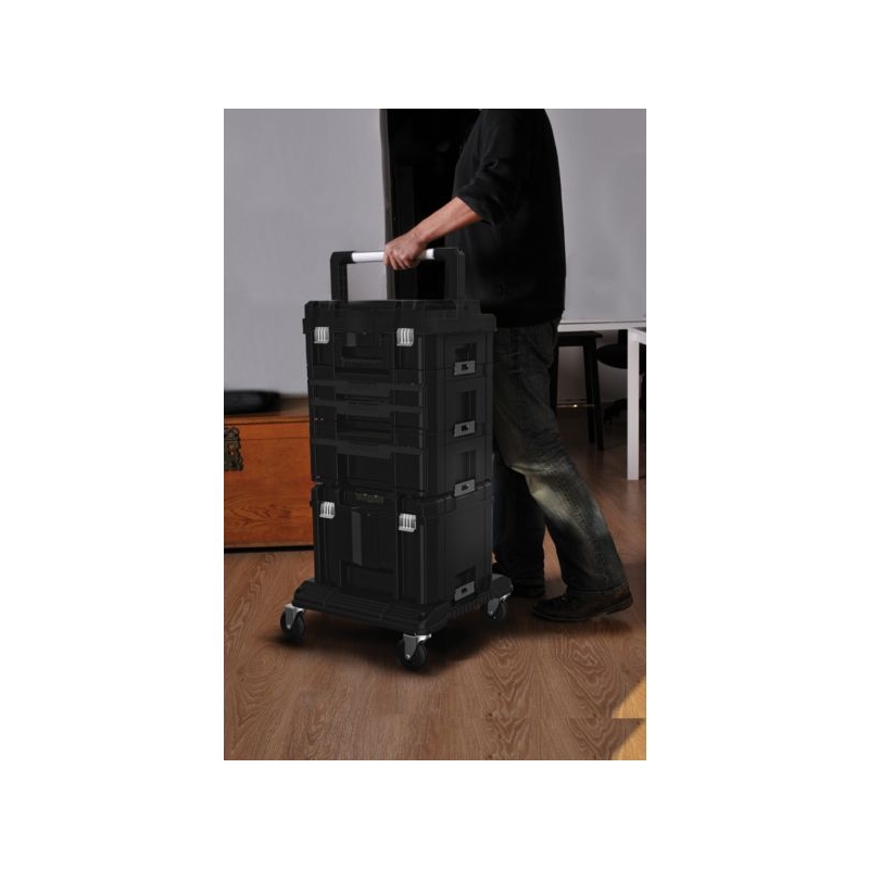 Solutions de rangement et de transport modulables à combiner selon les contraintes du chantier. Clips latéraux sur chaque module pour assembler plusieurs éléments entre eux et faciliter le transport. Livré sans outils.