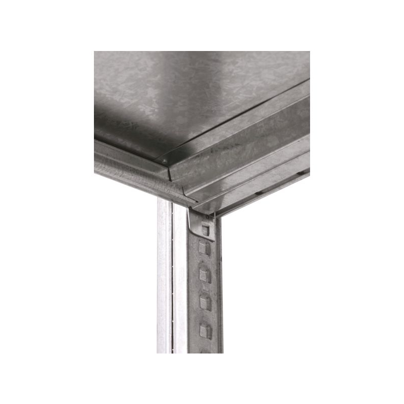 Solution galvanisé à tablettes tôlées. Hauteurs de poteaux jusqu'à 7,5m et 24 dimensions de tablettes. Conçu pour supporter les charges standards ou lourdes grâce au renfort qui permettent un chargement jusqu'à 360 kg par niveau. Finition galvanisé qui s'adapte à tous les environnements (industriel, réserve de magasin, logistique ,etc.) Poteaux et tablettes Galva Dim : 2000 x 1000 mm