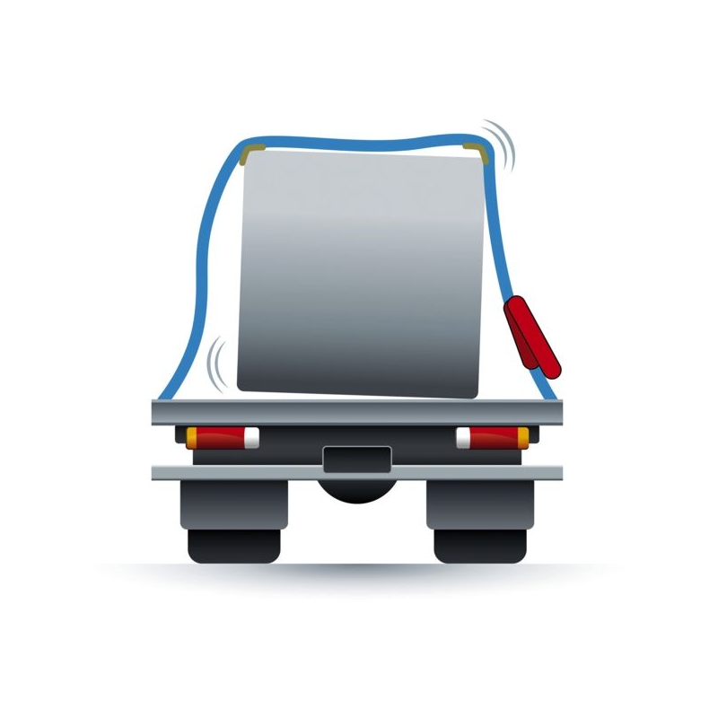 Arrimage 2 parties, équipé d'un accumulateur de tension en polyuréthane et d'un tendeur à détente progressive. Ce système breveté permet de rester constamment en tension. Il réduit la perte de tension de sangle liée aux aléas de la route. Deux passants polyuréthane protègent la marchandise et la sangle de l'abrasion. TMU : 2000 kg Longueur/largeur : 9 m/50 mm Norme : EN 12195-2