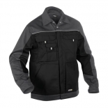 65% polyester 35% coton, 245 g/m². 2 poches basses, 2 poches poitrine, 1 poche intérieure, 1 poche téléphone, 1 porte-crayon, 1 poche outils. Fermeture à glissière sous rabat, poignets réglables avec velcro. Coloris : beige/noir, gris/noir, noir/gris Taille : M à 2XL